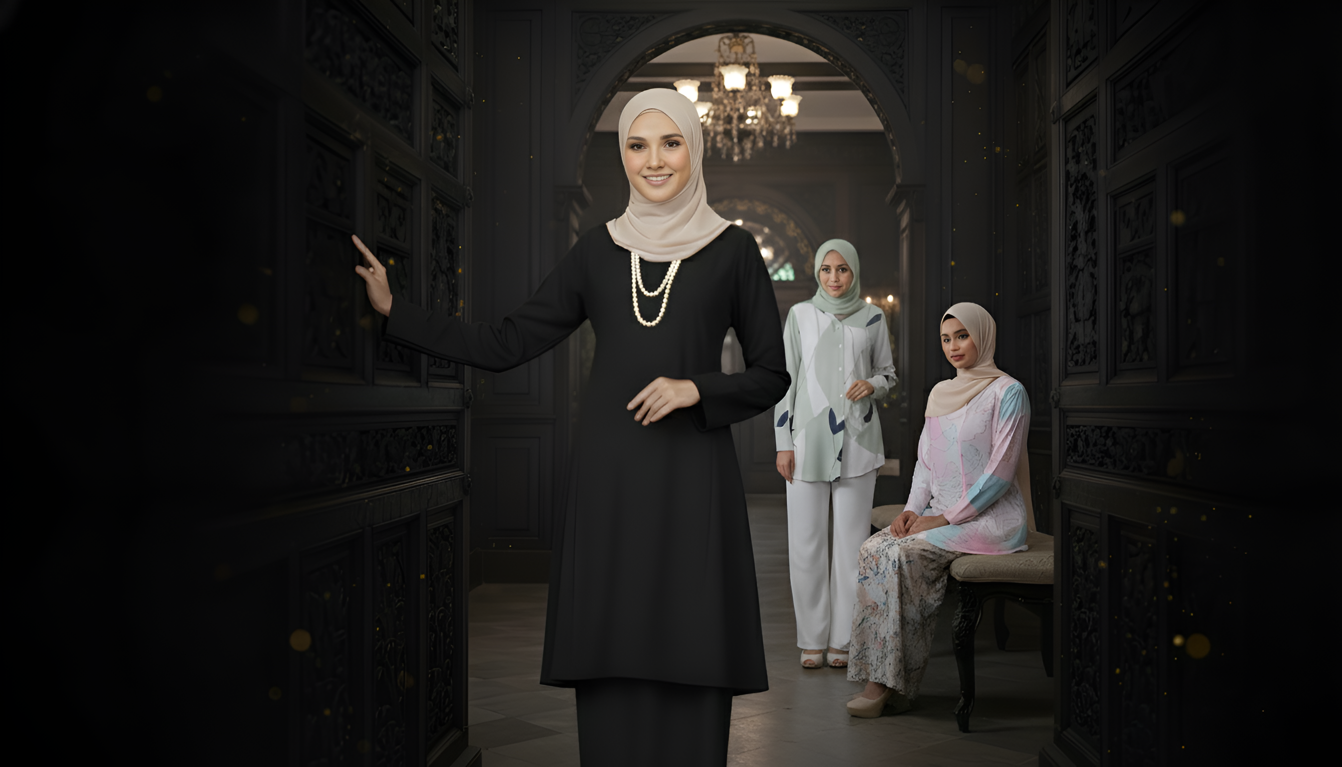 Baju Kurung Pahang Pesak Plain Cotton Crepe Ironless (Black)