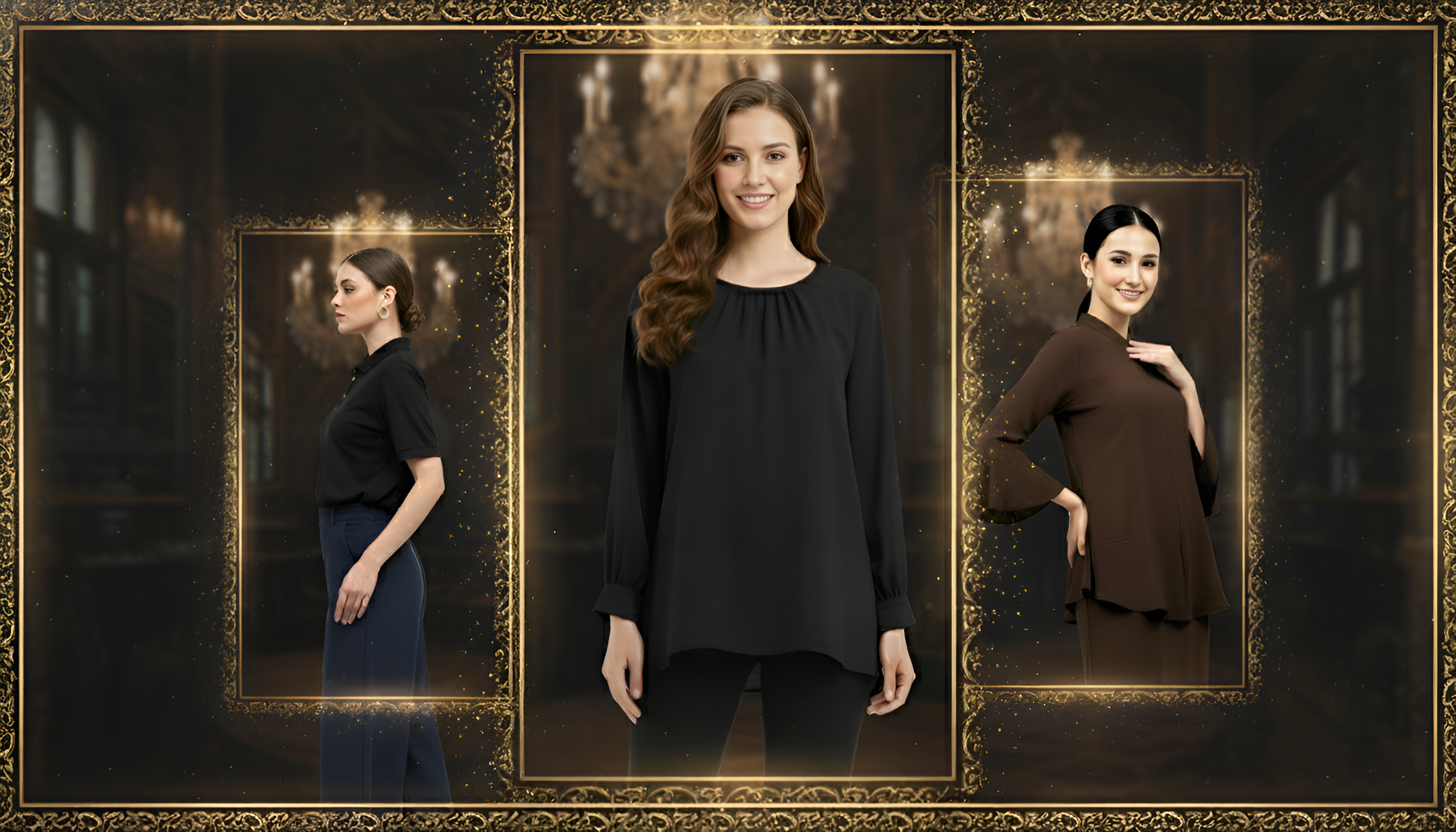 Kebaya Tunic Kolar - Baju Kebaya Casual dan Elegant (Silver)