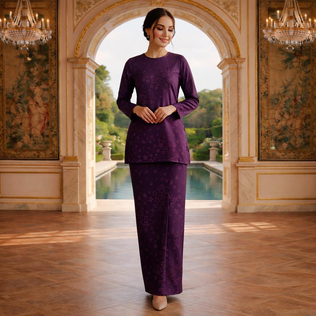 Valansia Mini Kurung Royal Satin Embossed (Dark Purple)