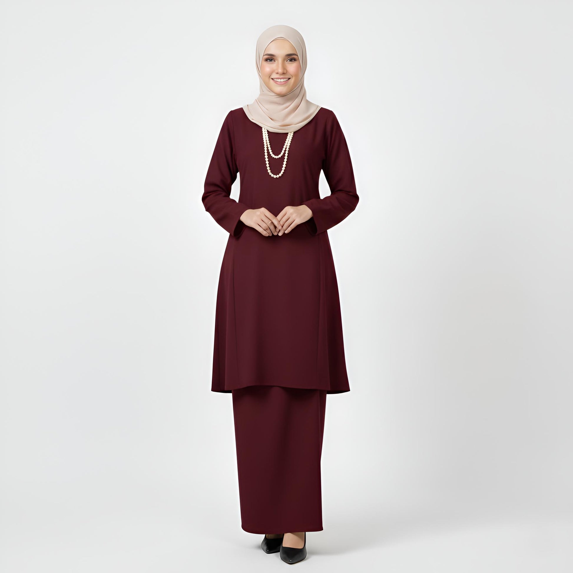 Baju Kurung Pahang Pesak (Maroon) Plain Cotton Crepe Ironless