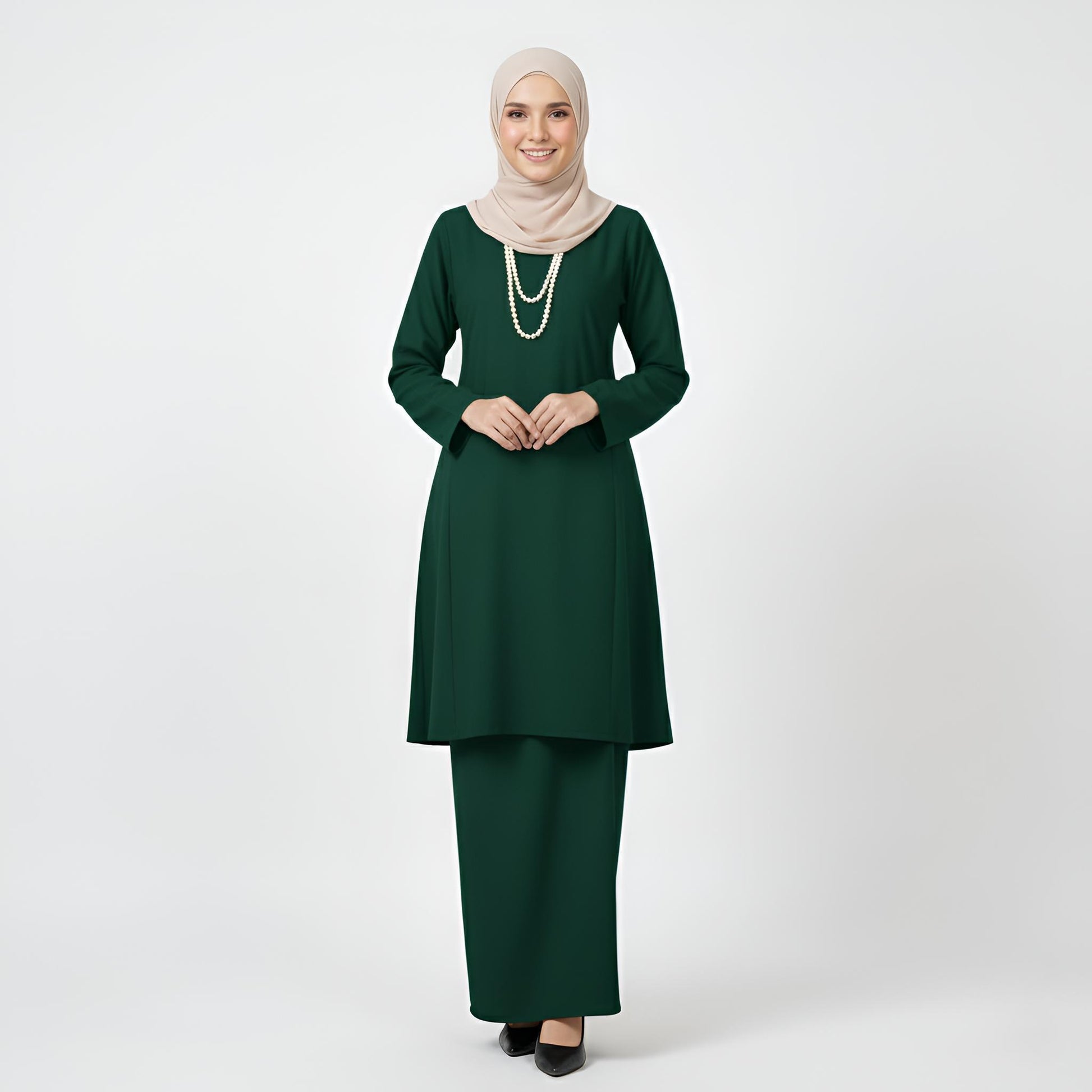 Baju Kurung Pahang Pesak (Emerald Green) Plain Cotton Crepe Ironless
