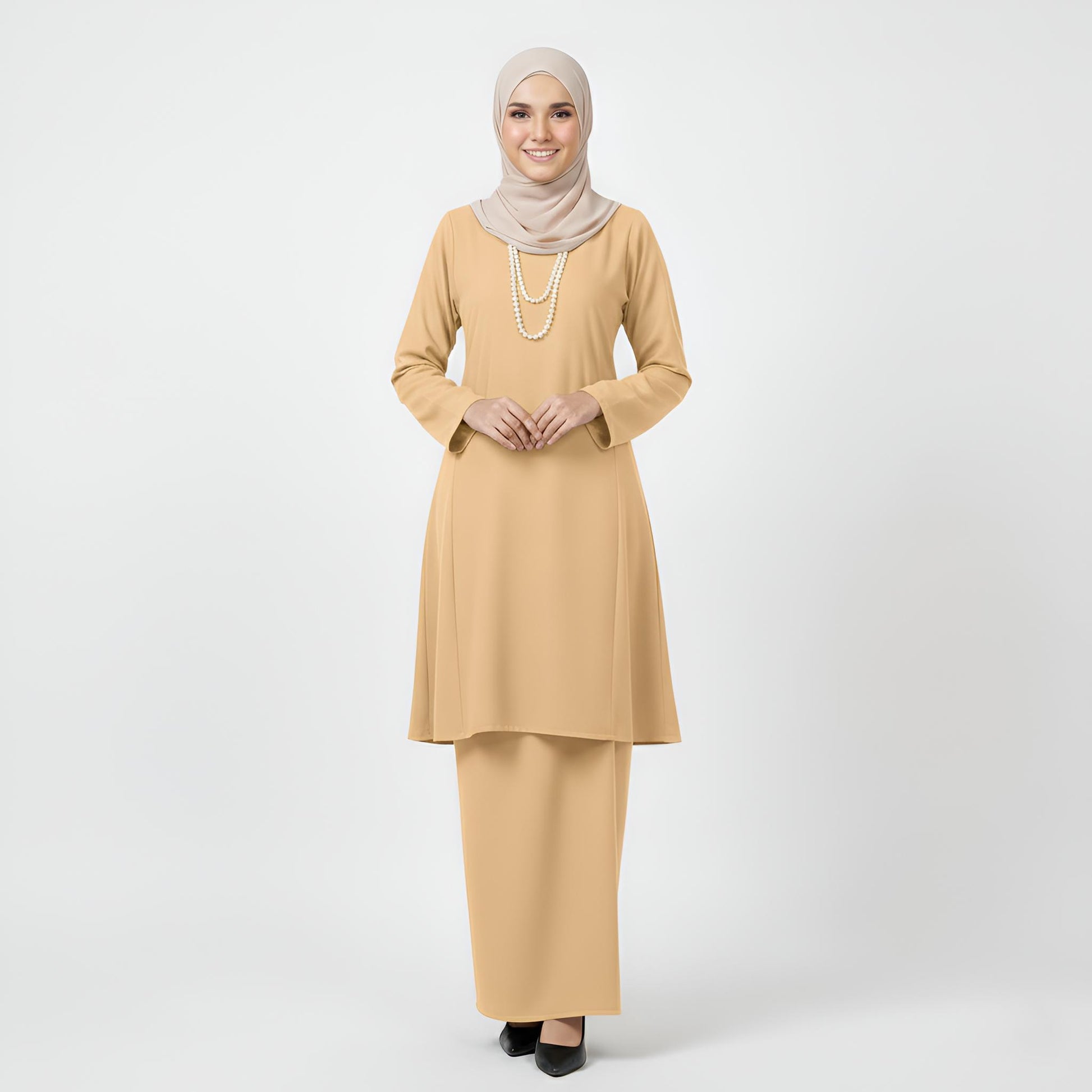 Baju Kurung Pahang Pesak (Nude) Plain Cotton Crepe Ironless