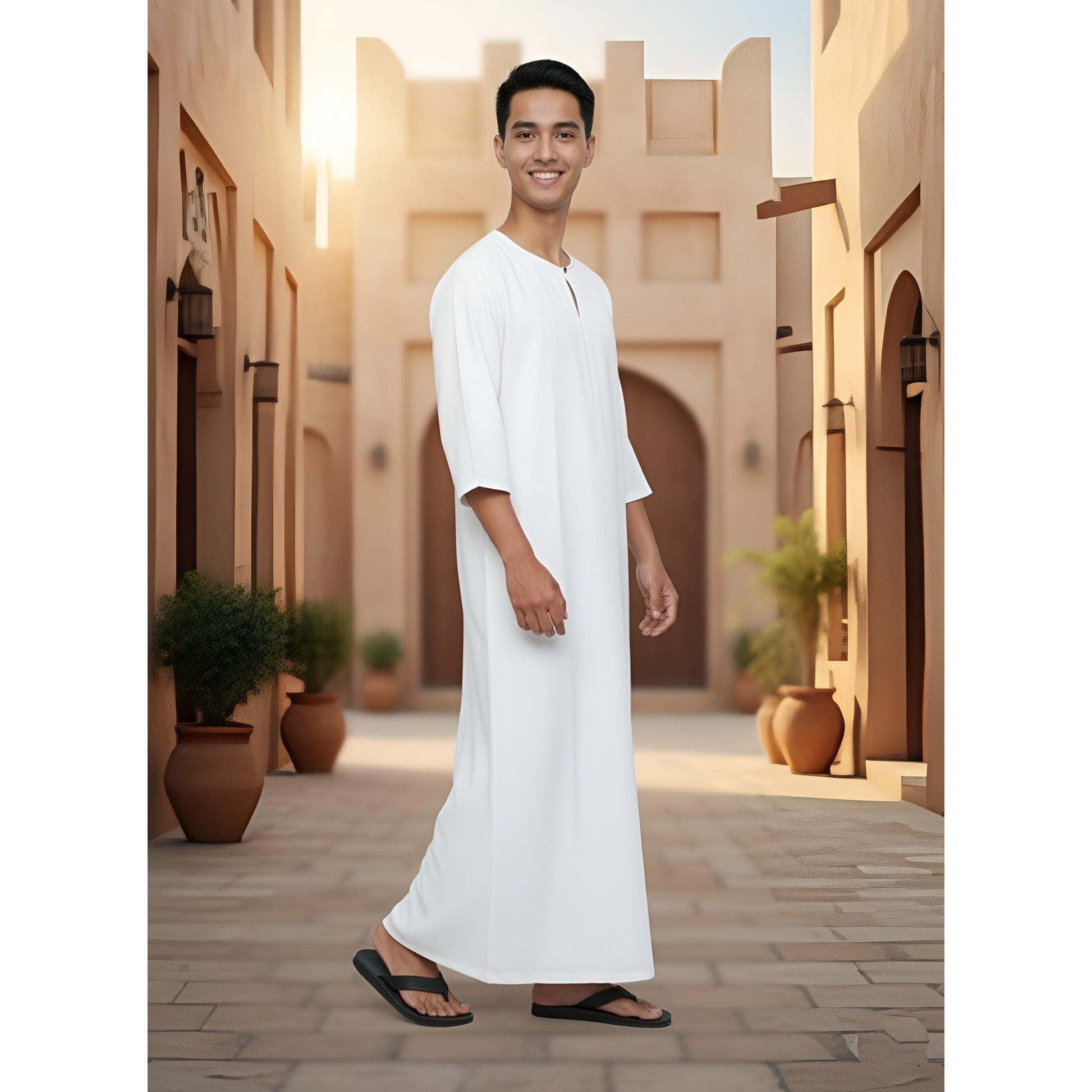 Kenalkan koleksi Jubah terkini kami, Jubah Lelaki Lengan Pendek Round Neck One Button 3/4 Sleeve - Comocrepe Premium! Dibuat dari kain Comocrepe berkualiti tinggi, Jubah ini sesuai untuk pelbagai acara, dari pergi keluar ke acara formal.