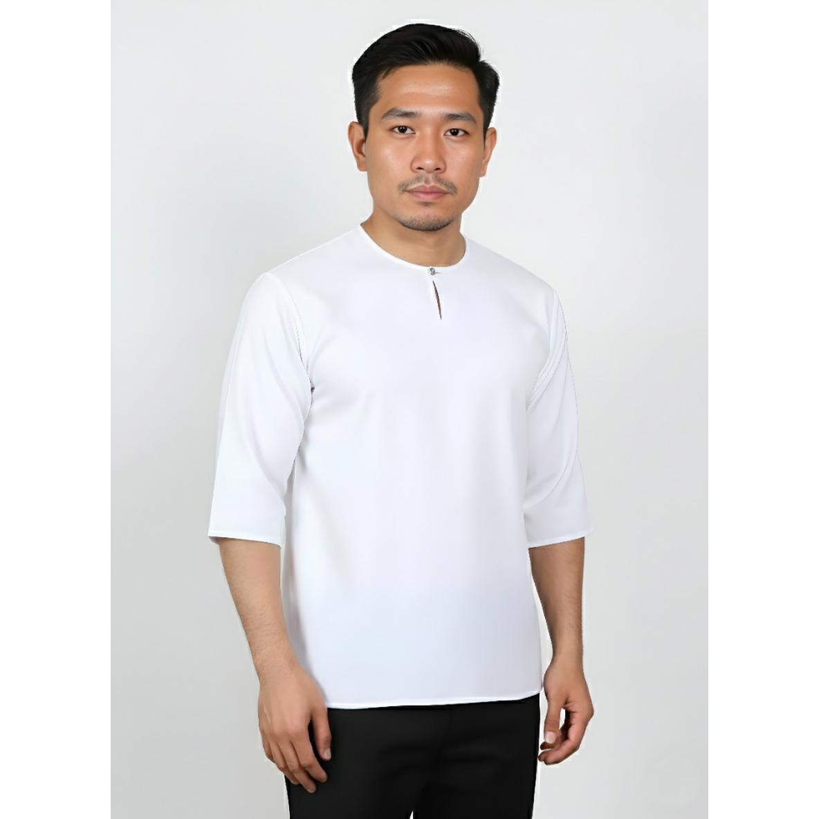 Kurta Lelaki Dewasa Tiga Suku Premium Crepe Dengan Wooded Button (White)