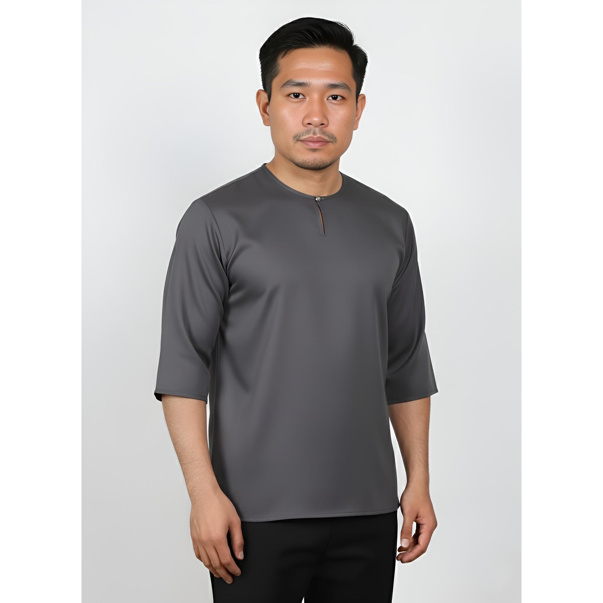 Kurta Lelaki Dewasa Tiga Suku Premium Crepe Dengan Wooded Button (Grey)