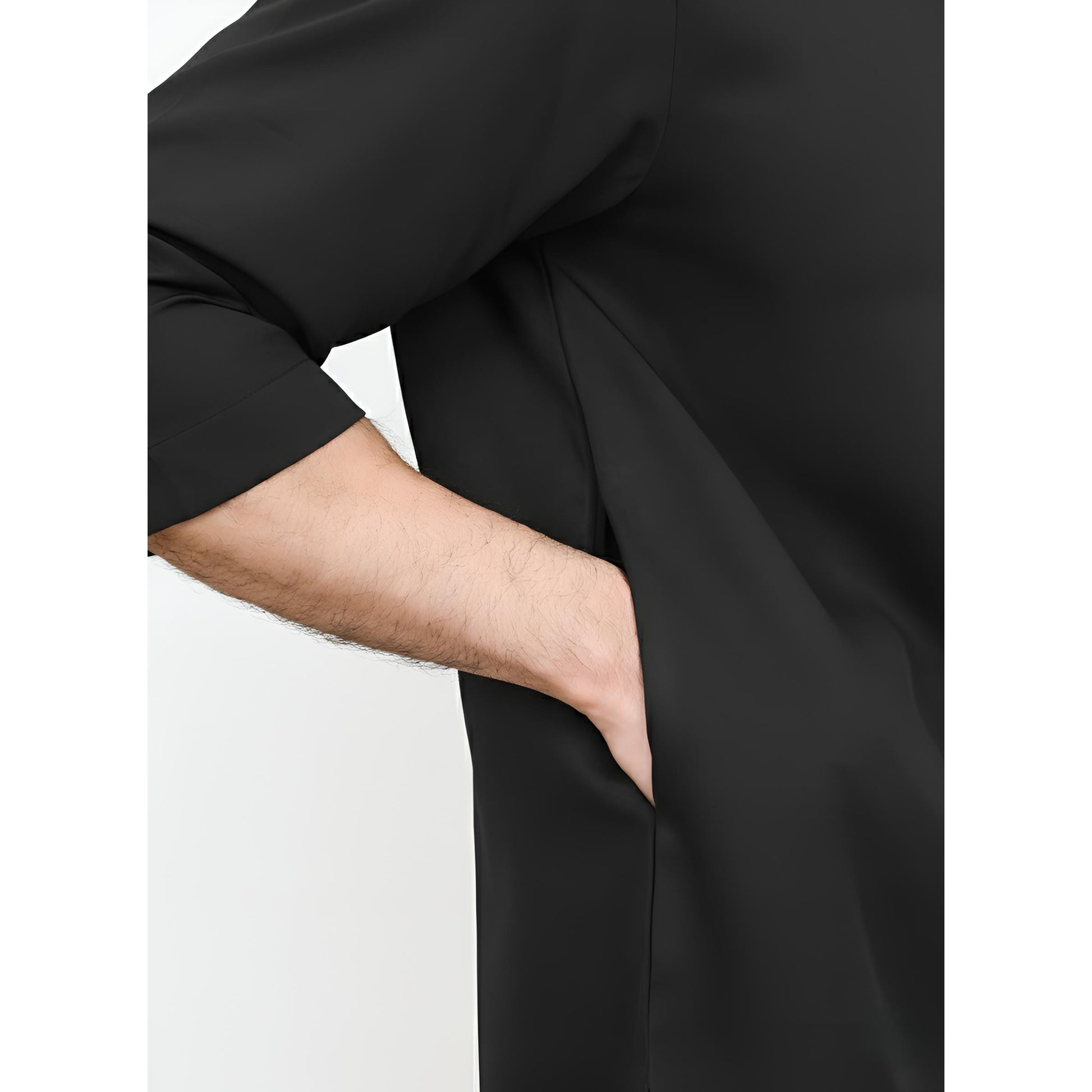 Gaya Tradisional: Kurta Lelaki Dewasa yang menonjolkan gaya tradisional. Terbuat daripada bahan crepe, memberikan rasa selesa dan elegan. Dilengkapi dengan butang kayu di bahagian atas, menambahkan unsur fesyen.