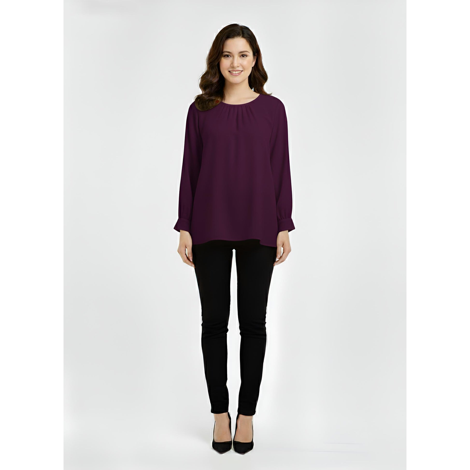 Victoria Blouse Casual Outfit Wanita Elegant Office & Casual Wear (Mangosteen)